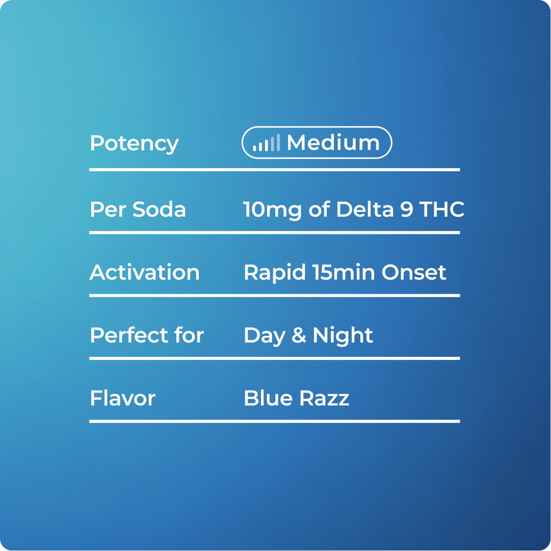 Blue Razz 10mg Sugarfree THC Soda (4-Pack) Gluten FreeVegan