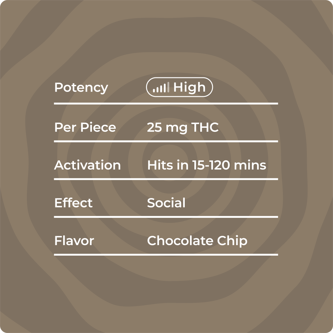 Classic chocolate chip cookies with an upgrade, a nostalgic sweet treat that delivers smooth, balanced effects in every perfectly portioned bite.