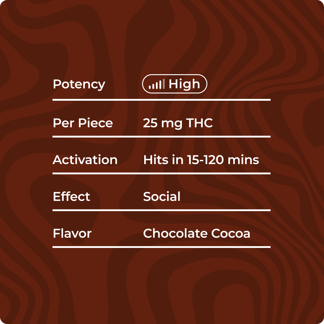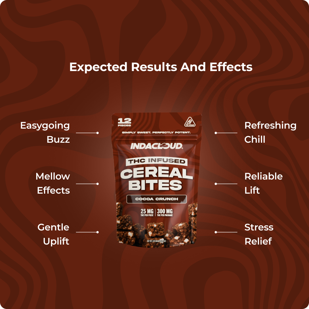 • Each bite is crafted with 25mg THC, blended into cocoa cereal clusters with marshmallow for consistent potency and rich flavor.