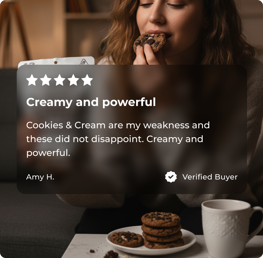 • Each bite is crafted with 25mg THC, blended into a creamy cookie recipe for consistent potency and sweet flavor.