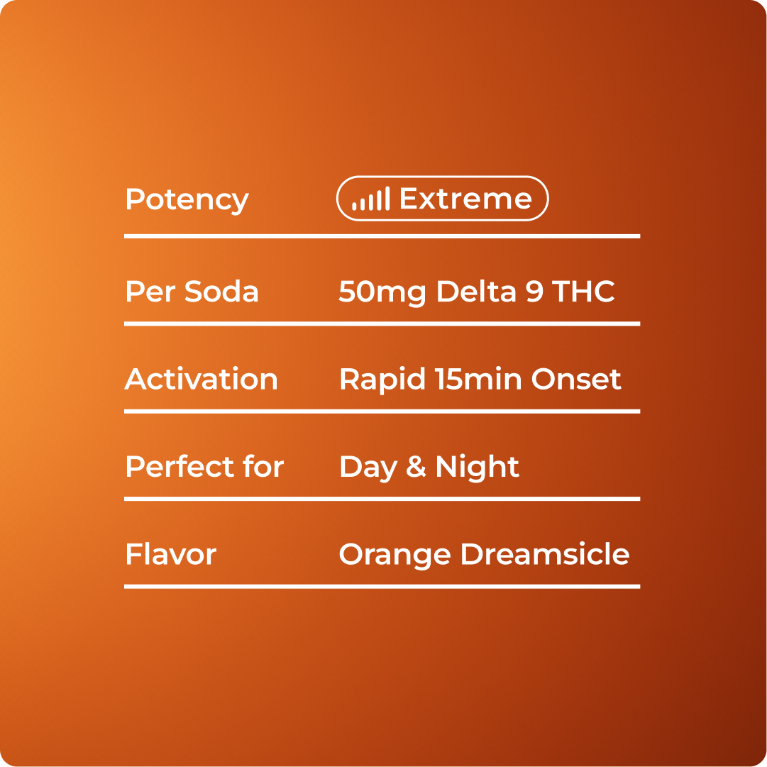 Creamy orange-vanilla flavor with a powerful 50mg dose. Rich taste, smooth impact designed for experienced consumers chasing deep calm and euphoric balance.